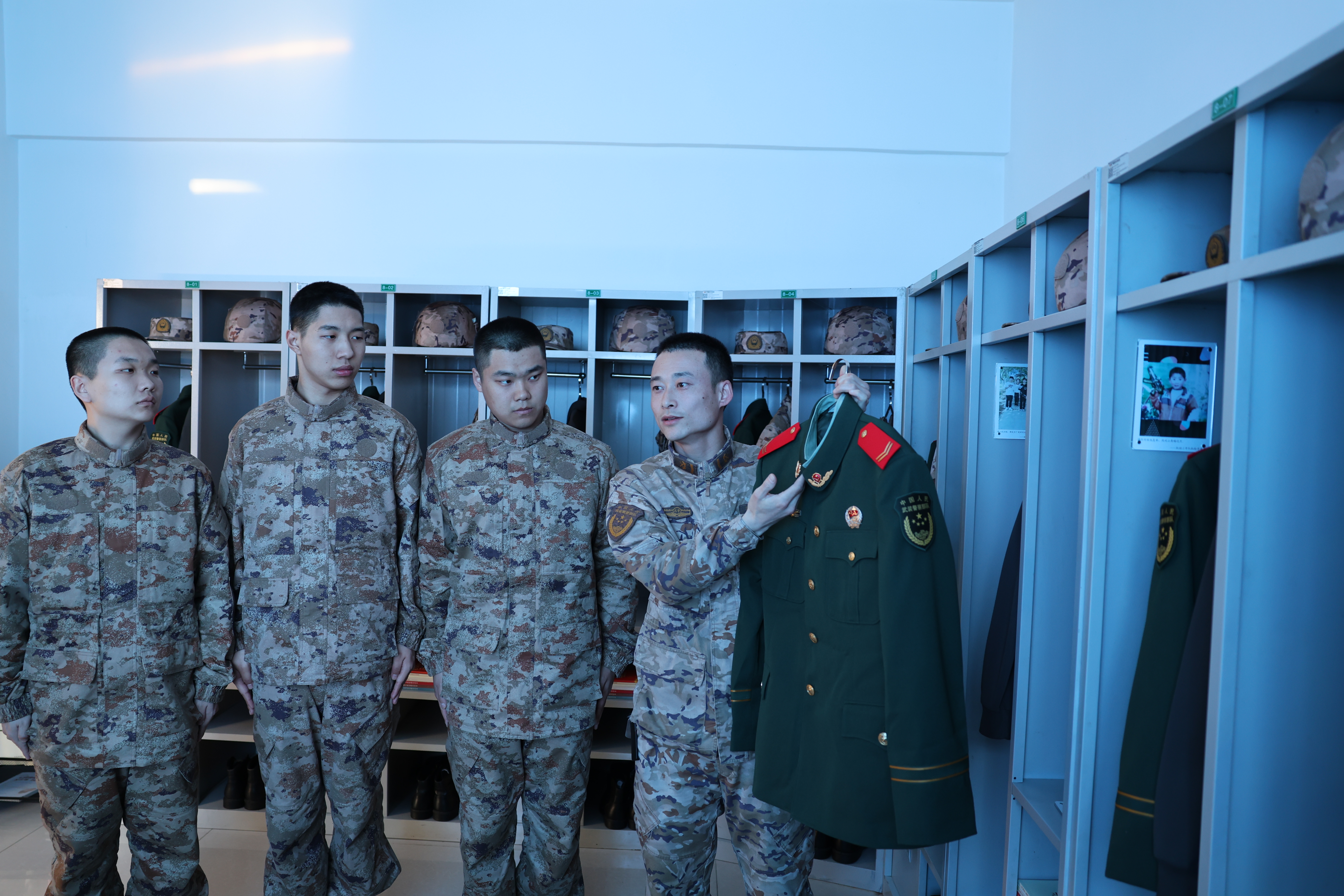 在武警某部,新兵们参观了官兵宿舍内务和专业训练场馆,近距离感受正规有序、严格规范的军营秩序。干净整洁的内务、棱角分明的被褥、细致规范的摆放,让大家切身感受到部队严明的纪律和严谨的作风,纷纷表示要以现役官兵为榜样,尽快实现从青年到军人的转变。