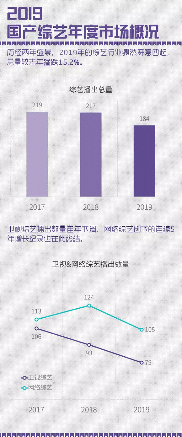 ¡¡¡¡×ÛÒÕ·½Ã棬ÊܽüÁ½Äê¹ã¸æÊг¡ÕûÌ彵εÄÓ°Ï죬2019¹ú²ú×ÛÒÕ²¥³ö×ÜÁ¿Îª184²¿£¬½ÏÈ¥Äê¼õÉÙ33²¿¡£ÎÀÊÓ×ÛÒÕ²úÁ¿Á¬ÐøÈýÄêÏ»¬£¬È«Äê½ö²ú³ö79µµ£»Á¬ÐøÎåÄêÔö³¤µÄÍøÂç×ÛÒÕ£¬Ò²Ê׶ȳöÏÖ¼õ²ú¡£Îå´óÎÀÊÓºÍËÄ´óÊÓÆµÆ½Ì¨2019Äê²ú³öµÄ“×ÛN´ú”´ï65²¿£¬×ÜÁ¿ÓëÉÏÄê»ù±¾³Öƽ£¬µ«Õ¼±ÈÉϸ¡½ü10%¡£Óë´Ëͬʱ£¬Á÷Á¿Ò²¶¼±»“×ÛN´ú”¾Û¼¯£¬²»ÂÛÊÇÊÕÊÓÂʰñµ¥»¹ÊÇÈȶȰñµ¥£¬“×ÛN´ú”¶¼Õ¼¾Ý´ó°ë¡£