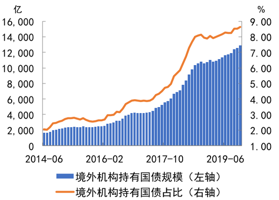 ¡¡¡¡½üÄêÀ´ÎÒ¹úծȯÊг¡¶Ô¹ú¼ÊͶ×ÊÕßµÄÎüÒýÁ¦²»¶ÏÔöÇ¿¡£½ü3Äê¾³Íâ»ú¹¹³ÖÓÐÖйú¹úÕ®µÄ±ÈÀýÓɲ»×ã4%ÅÊÉýÖÁ8%ÒÔÉÏ£¬½ØÖÁ2019Äê11ÔÂÄ©£¬Öйú¹úÕ®´æÁ¿¹æÄ£´ï14.9ÍòÒÚÔª£¬ÆäÖо³Íâ»ú¹¹³ÖÓйúÕ®¹æÄ£½ü1.3ÒÚÔª£¬Õ¼¹úÕ®´æÁ¿µÄ8.63%£¨¼ûͼ3£©¡£