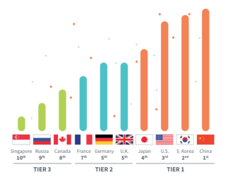 ¡¡¡¡ÔÚÃÀ¹úÎÞÏßͨÐźͻ¥ÁªÍøÐ»á(CTIA)¹«²¼µÄ×îб¨¸æÖУ¬È«Çò5G¼¼ÊõÅÅÃûǰÎå·Ö±ðÊÇÖйú¡¢º«¹ú¡¢ÃÀ¹ú¡¢ÈÕ±¾ºÍÓ¢¹ú¡£ËäÈ»Öйúλ¾ÓǰÁУ¬µ«ÎÒÃÇ·¢ÏÖÖС¢º«¡¢ÃÀÖ®¼äµÄ²î¾à²¢²»ÊǺܴó¡£