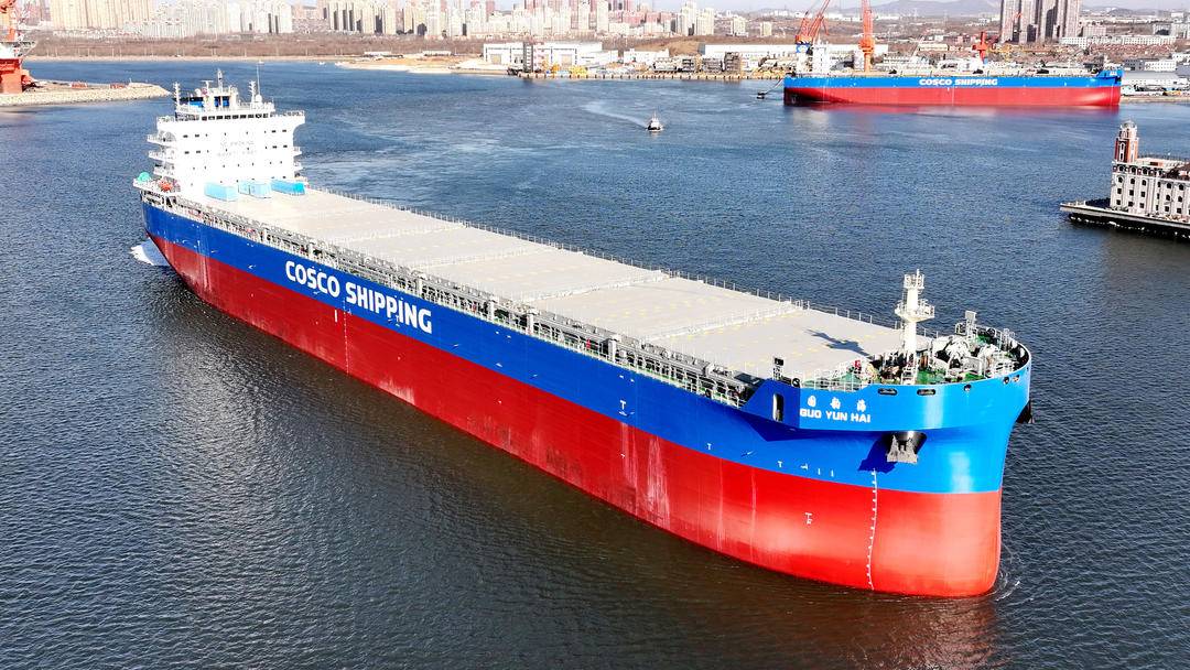 作为该系列首制船,“国韵海”轮的交付进一步优化了中国远洋海运集团船队运力结构,对保障国家粮食运输安全、推动航运业绿色升级具有重要意义。