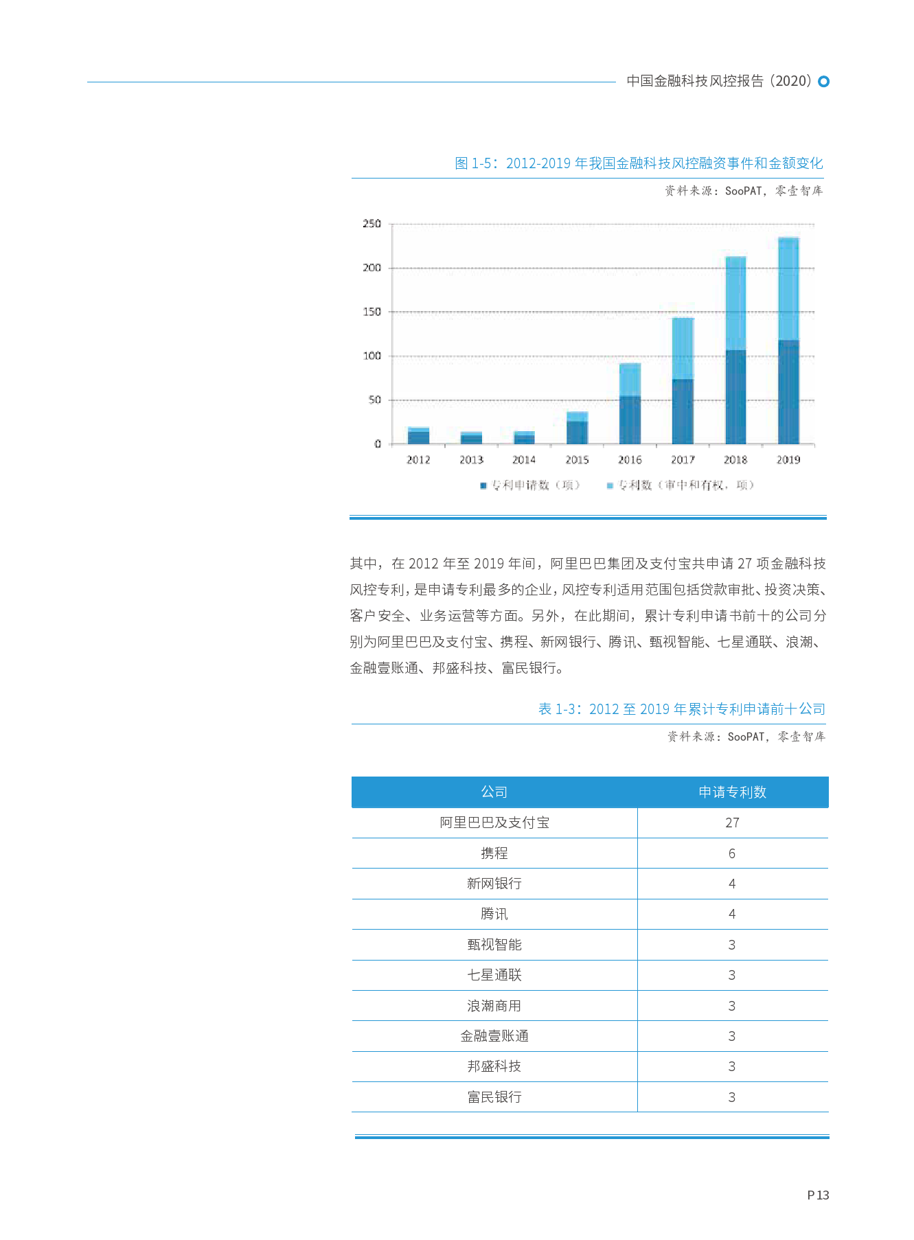 ¡¡¡¡ÔÚרÀû·½Ã棬¸ù¾ÝSooPATÊý¾ÝÏÔʾ£¬×Ô2014Ä꿪ʼ£¬¹úÄÚÓë½ðÈڿƼ¼·ç¿ØÏà¹ØµÄרÀûÉêÇë³ÖÐøÉÏÉý¡£2014Äê½ðÈڿƼ¼·ç¿Ø×¨ÀûÉêÇëÊýΪ10Ï2019ÄêÉêÇëÊý´ïµ½118Ï5Äê¼äרÀûÉêÇëÊýÄ긴ºÏÔö³¤ÂÊ´ï63.82%¡£ÆäÖУ¬ÔÚ2012ÄêÖÁ2019Äê¼ä£¬°¢Àï°Í°Í¼°Ö§¸¶±¦¹²ÉêÇë27Ïî½ðÈڿƼ¼·ç¿Ø×¨Àû£¬Éæ¼°Ö§¸¶¡¢Í¶×ʾö²ß¡¢ÕË»§°²È«¡¢ÐÅ´ûµÈ³¡¾°Ó¦Óã¬ÊÇÉêÇëרÀû×î¶àµÄÆóÒµ¡£
